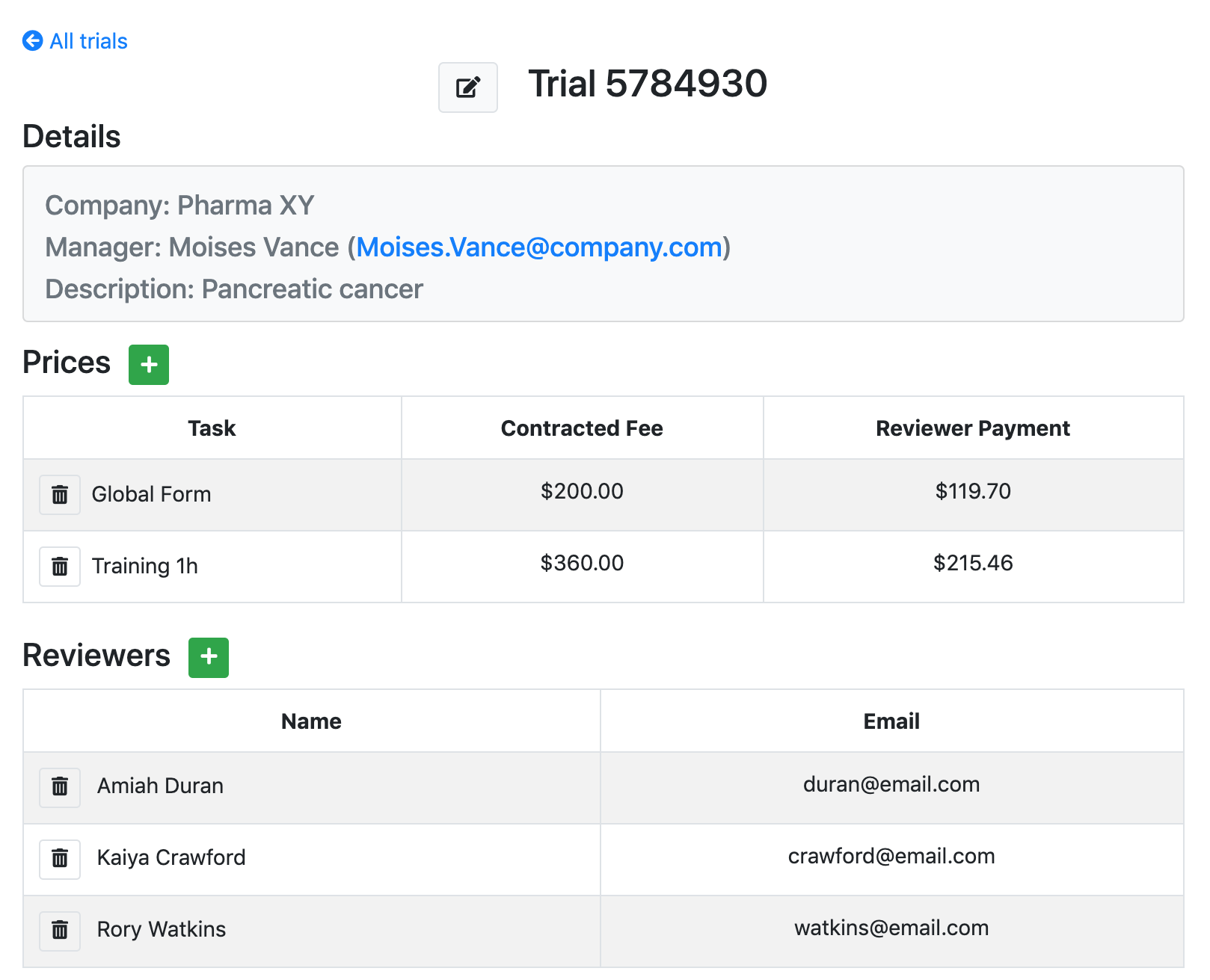 to manage their trials, entries, jobs carried out, and in the production of reports and